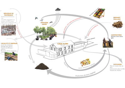La Casa Flori est avant tout un projet qui naît d’une situation — celle de ce quartier et de la proximité avec la petite ceinture — et d’une histoire – celle de la rencontre et des collaborations passées avec les différents membres de notre groupement.