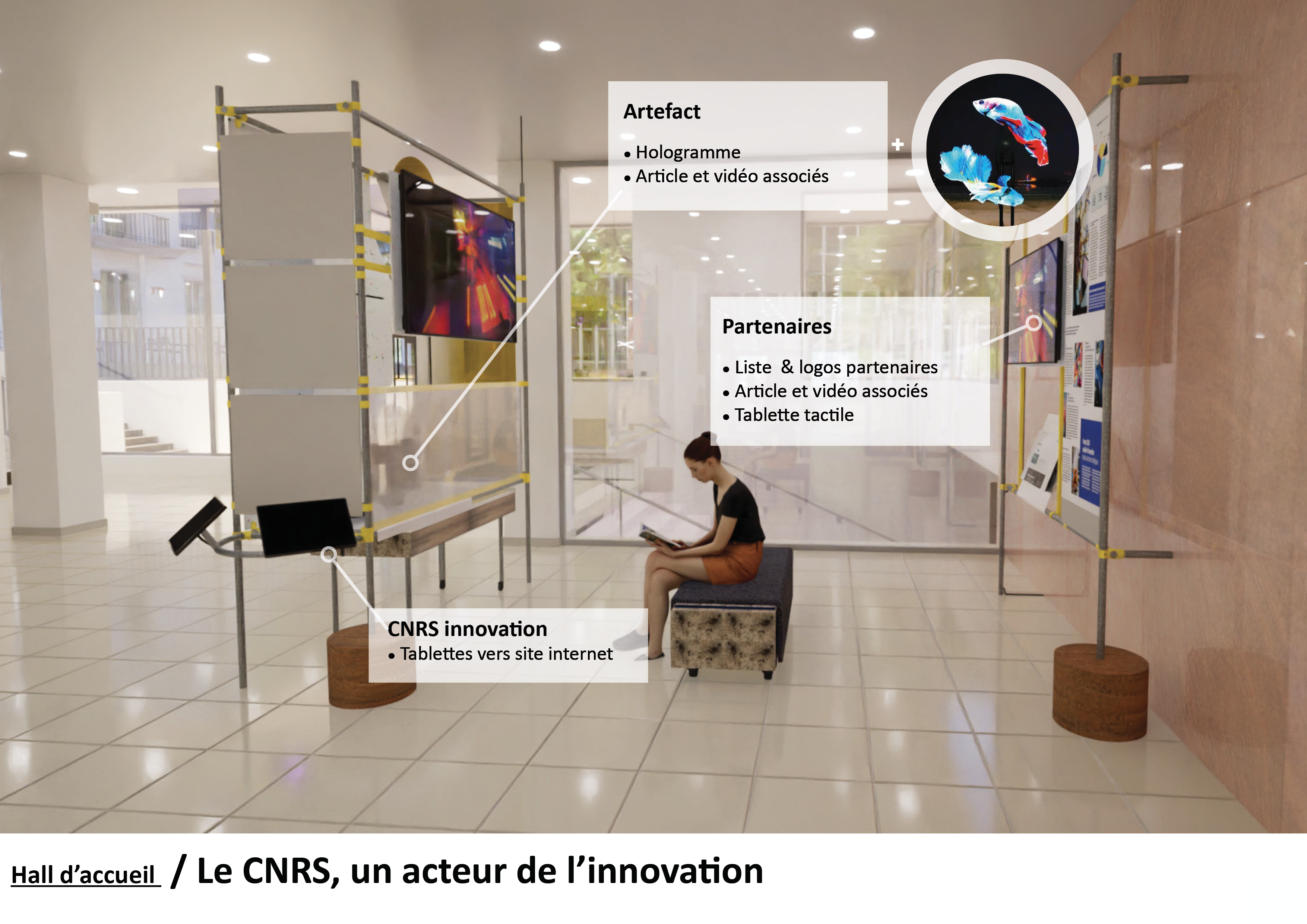 YA+K et Okoni ont conçu une scénographie reflétant une image innovante, ancrée dans le réel et les valeurs du CNRS.